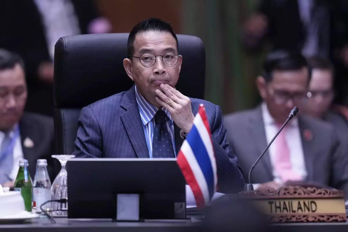 Thailand's Foreign Minister Maris Sangiampongsa attends a plenary session of the Association of Southeast Asian Nations (ASEAN) Foreign Ministers' meeting at the Convention Centre in Kuala Lumpur, Malaysia, Wednesday, July 9, 2025. (AP Photo/Vincent Thian)