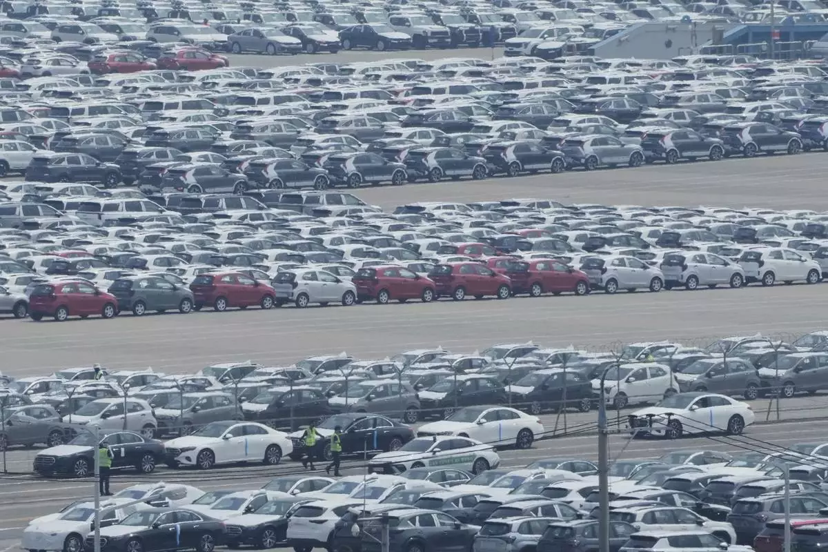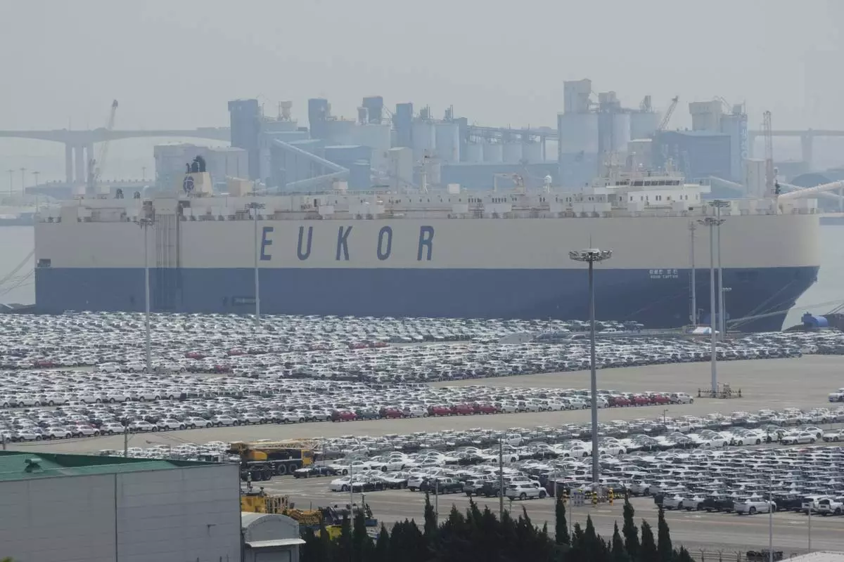 Vehicles for export are parked at a port in Pyeongtaek, South Korea, Tuesday, July 8, 2025. (AP Photo/Ahn Young-joon)