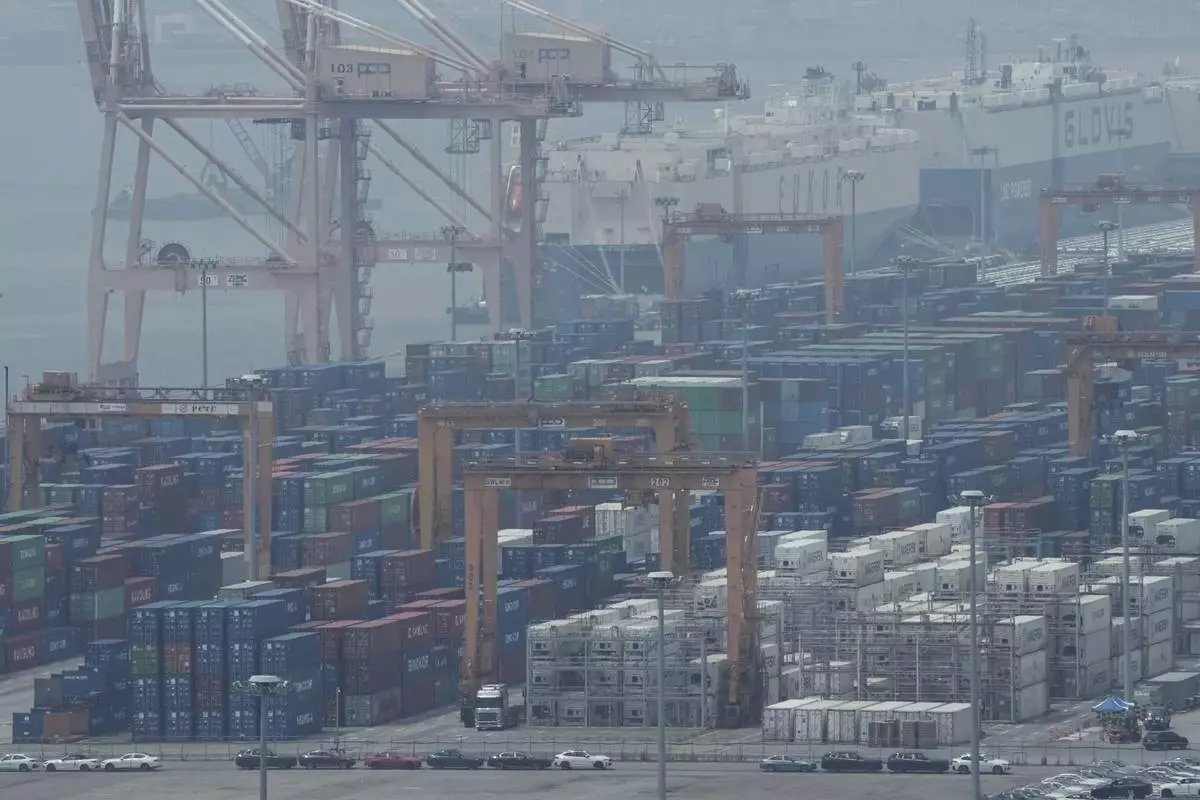 Cranes and shipping containers are seen at a port in Pyeongtaek, South Korea, Tuesday, July 8, 2025. (AP Photo/Ahn Young-joon)