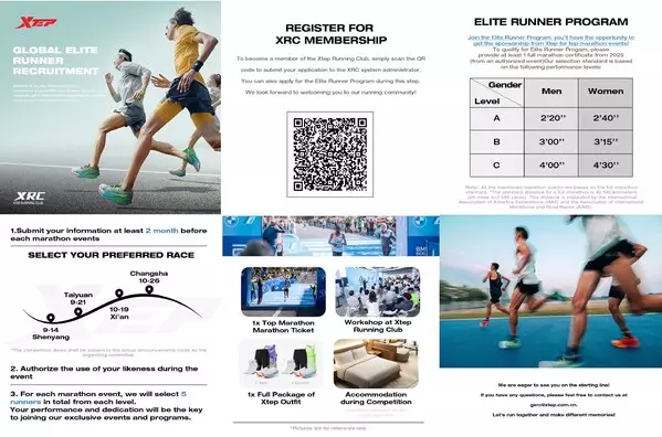 XIAMEN, China, July 9, 2025 /PRNewswire/ -- Xtep, a leading Chinese performance sportswear brand, announces that applications for its inaugural global Elite Runner Program will close on July 14. The first edition of the program kicks off at Shenyang Marathon in China on September 14, offering elite runners worldwide exclusive access to premier marathons.