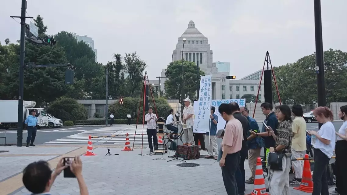 Many Japanese gathered in front of Japan's National Diet in Tokyo on Monday, the day marking the 88th anniversary of the start of China's resistance against Japanese aggression, urging the Japanese government to face up to history and reflect on the crime of aggression.