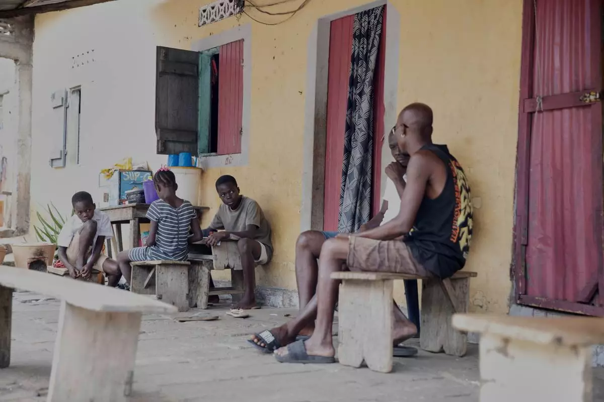 Relatives of late 15-year-old Jacques Koami Koutoglo, sit outside their house as they mourn in Lome, Togo, Monday, July 7, 2025. (AP Photo/Erick Kaglan)