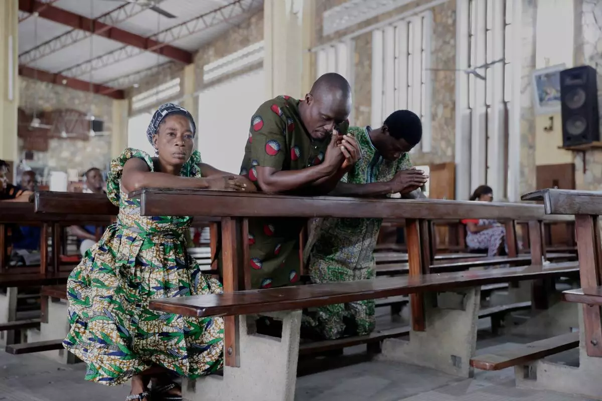 Relatives of the late 15-year old Jacques Koami Koutoglo, attend a prayer service at a church in Lome, Togo, Monday, July 7, 2025. (AP Photo/Erick Kaglan)