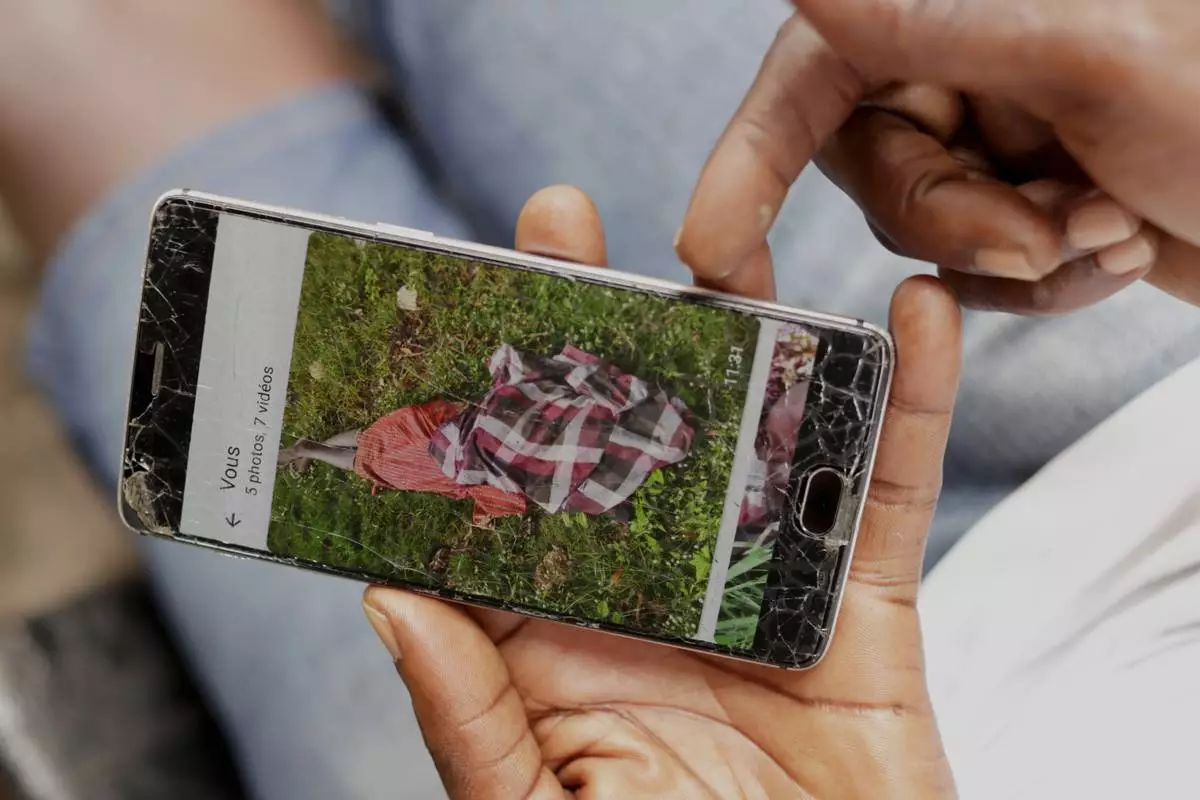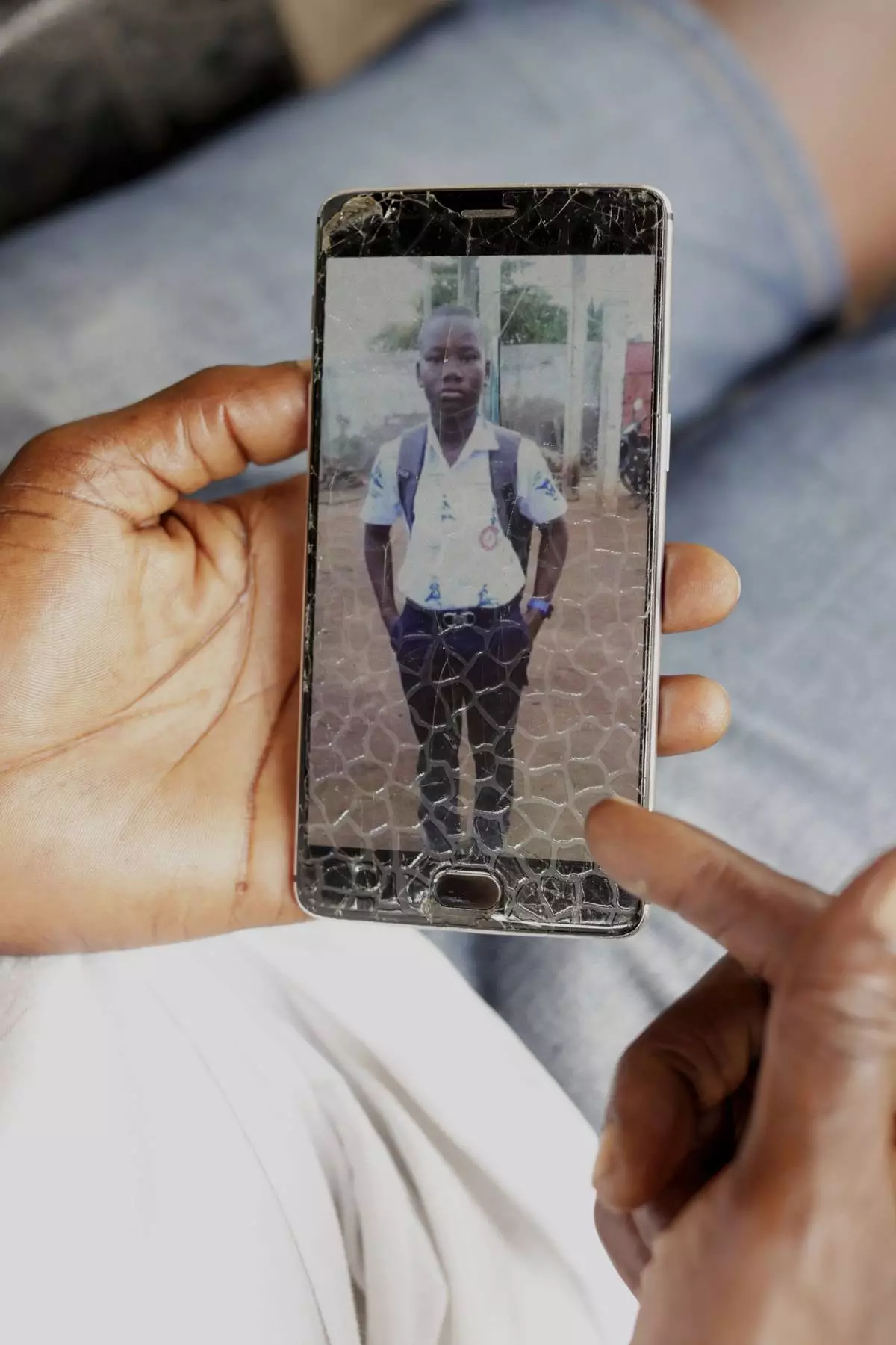 Koutoglo Kossi Mawuli, the uncle of late 15-year-old Jacques Koami Koutoglo, shows a photograph of his body on a mobile phone after it was recovered from a lagoon in Lome, Togo, Tuesday, July 8, 2025. (AP Photo/Erick Kaglan)