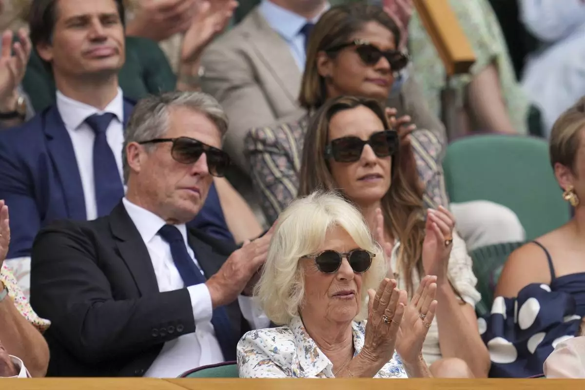 At Centre Court, Camilla watched as unseeded Belinda Bencic beat No. 7 Mirra Andreeva 7-6 (3), 7-6 (2). British actor Hugh Grant was also seated in the Royal Box.