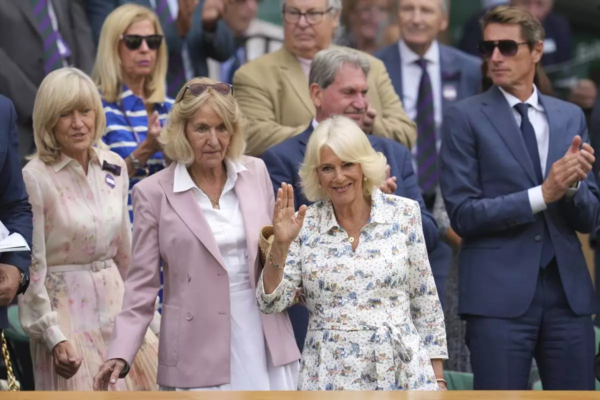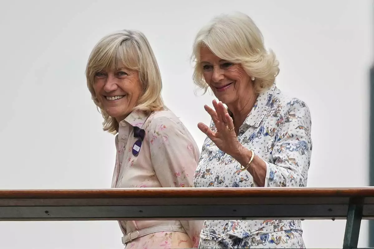 Camilla, the wife of King Charles III, visited with All England Club chair Debbie Jevans in the morning before play got started at the grass-court Grand Slam tournament.