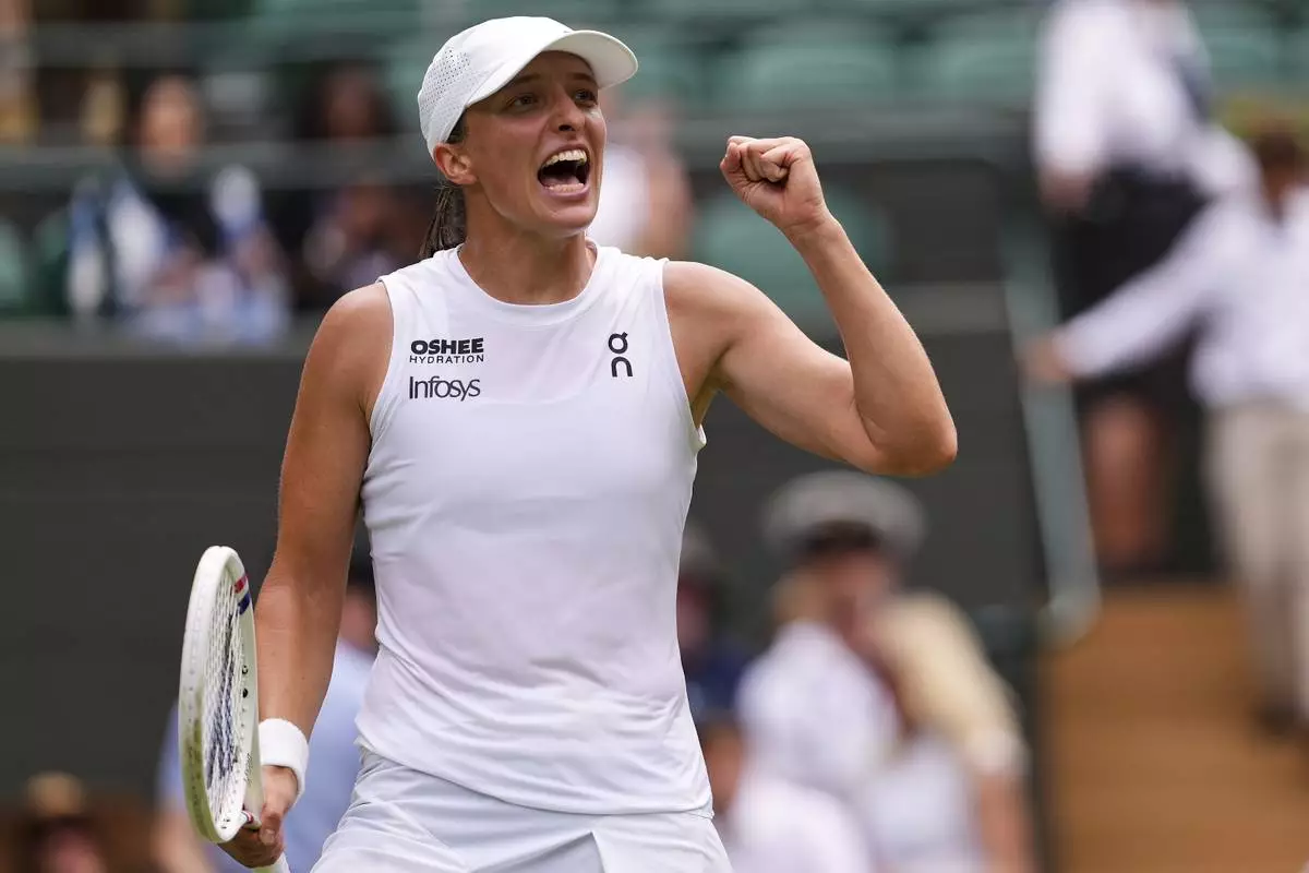 LONDON (AP) — Iga Swiatek reached the Wimbledon semifinals for the first time with a 6-2, 7-5 victory over 19th-seeded Liudmila Samsonova that went from a stroll to a bit of a struggle in the late stages Wednesday.