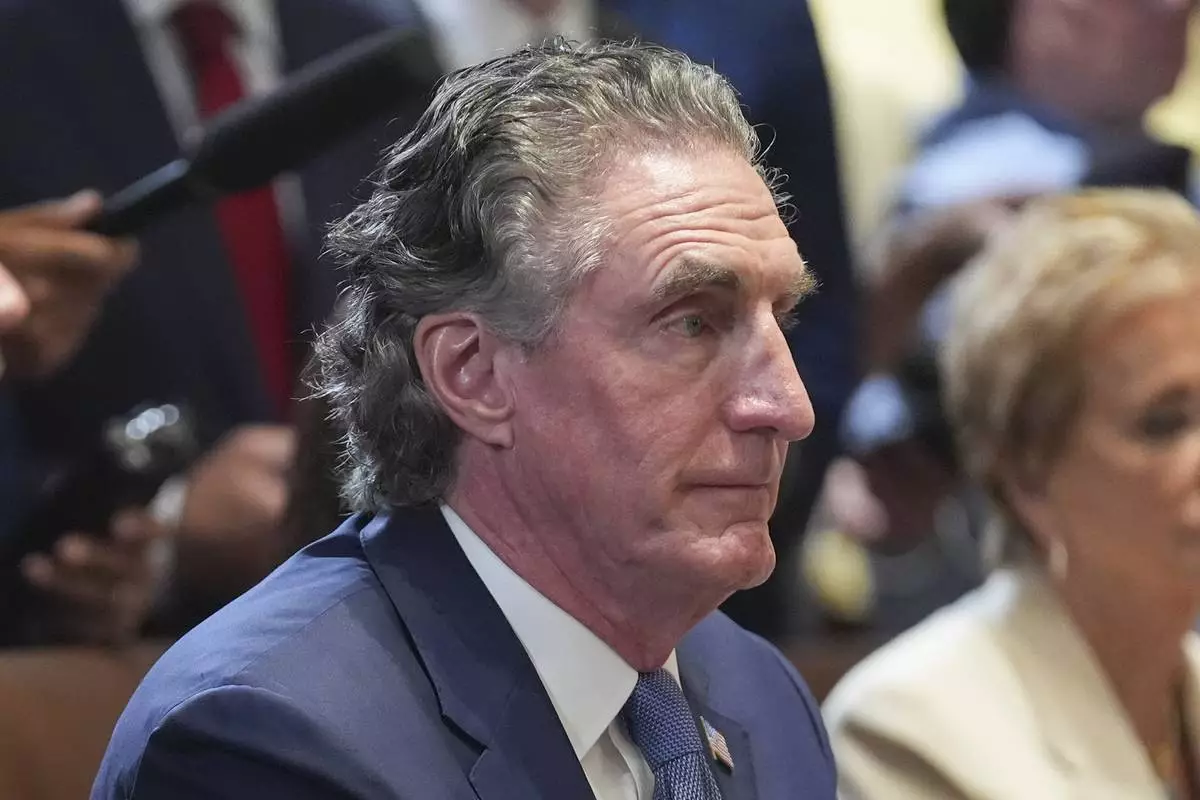 Secretary of Interior Doug Burgum listens to President Donald Trump speak during a cabinet meeting at the White House, Tuesday, July 8, 2025, in Washington. (AP Photo/Evan Vucci)