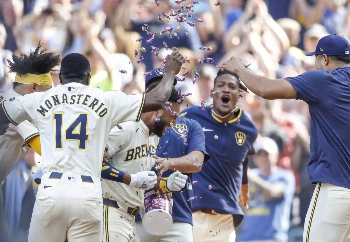 William Contreras led off the bottom of the 10th with a fly to deep center off Kirby Yates (4-3) that advanced automatic runner Sal Frelick to third. Chourio then singled through the left side of a drawn-in infield for his first career walk-off hit.