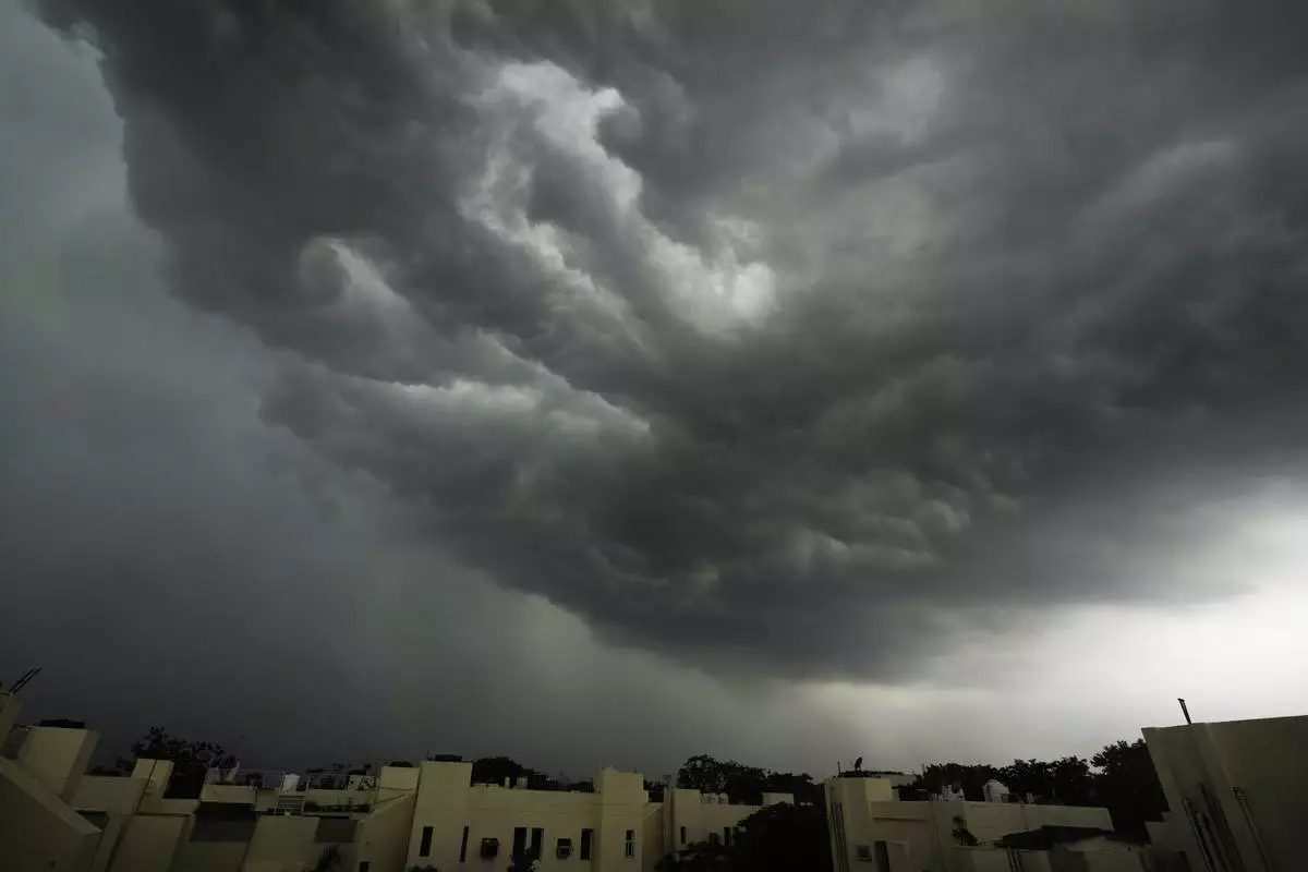 FILE - Monsoon clouds gather over New Delhi's skyline, India, June 28, 2025. (AP Photo/Manish Swarup, File)