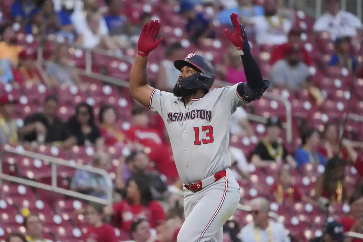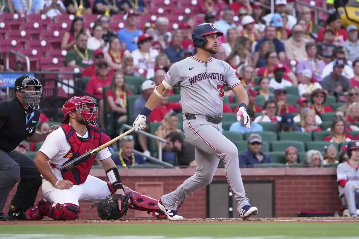ST. LOUIS (AP) — James Wood hit his 24th homer, Nathaniel Lowe added a three-run shot and the Washington Nationals beat the St. Louis Cardinals 8-2 Wednesday night to give interim manager Miguel Cairo his first victory.