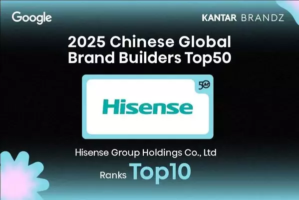 QINGDAO, China, July 10, 2025 /PRNewswire/ -- Hisense, a global leader in consumer electronics and home appliances, has once again been named among the top 10 most global Chinese brands in the newly released Kantar BrandZ Chinese Global Brand Builders 2025, jointly published by Google and Kantar. Hisense ranks No. 8 overall, maintaining its position in the top 10 for the ninth consecutive year, and remains the highest-ranked TV brand on the list.