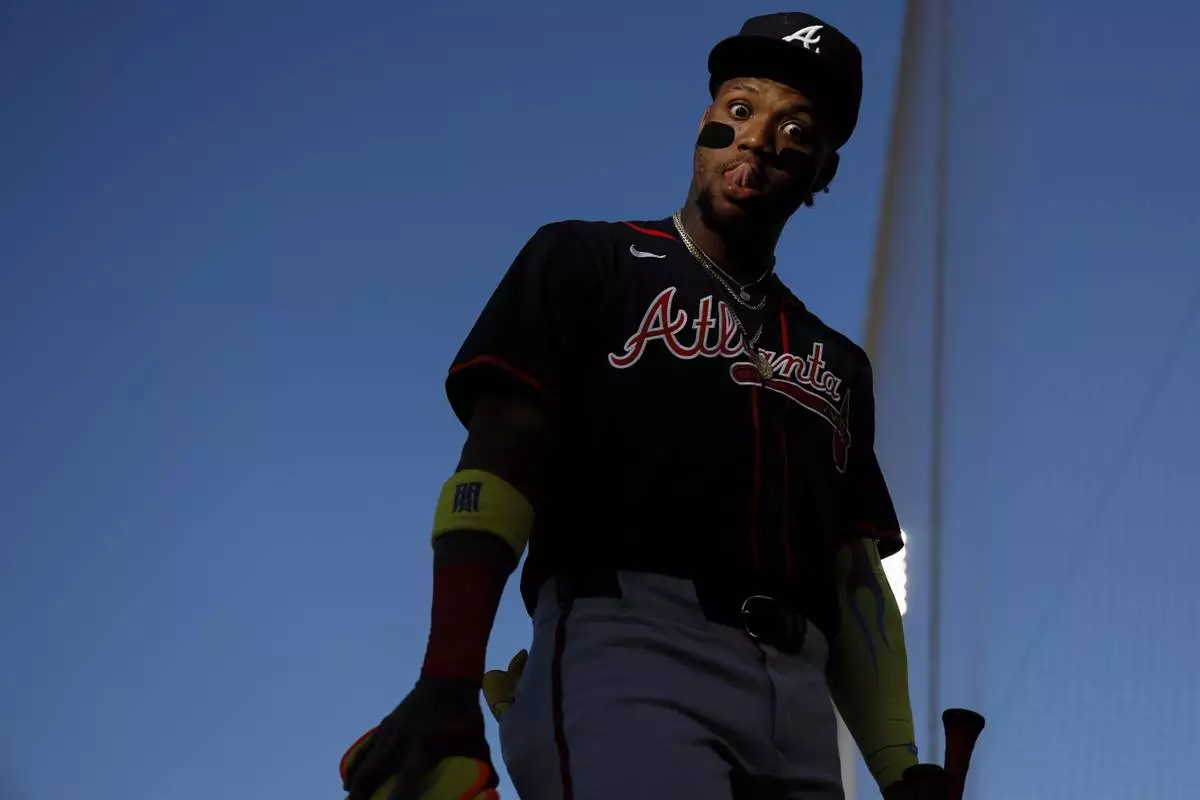 Atlanta Braves' Ronald Acuña Jr. poses for a photo before the start of a baseball game against the Athletics, Wednesday, July 9, 2025, in West Sacramento, Calif. (AP Photo/Sergio Estrada)