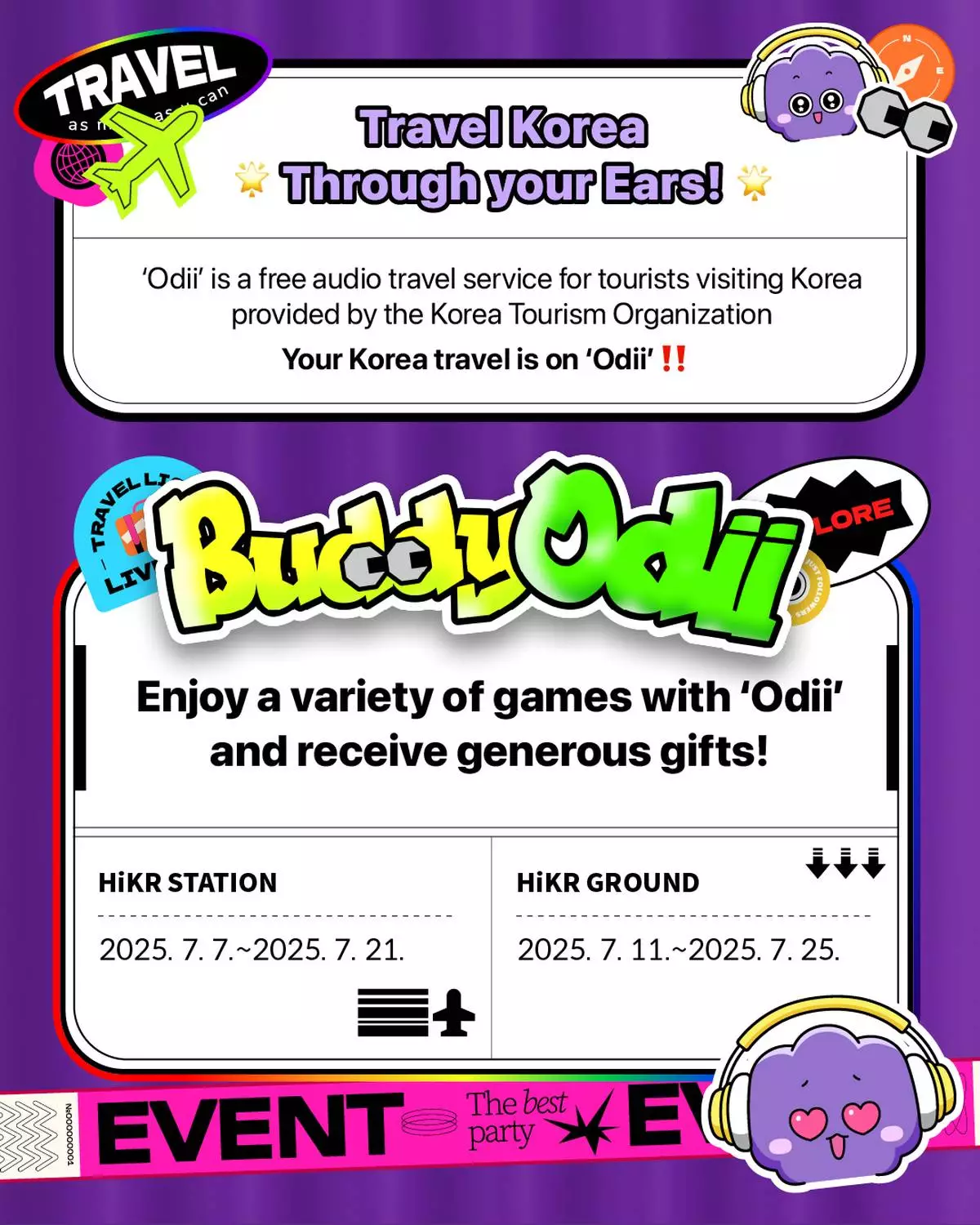 Visitors can download the Odii app onsite and enjoy the “Listening Zone,” which features audio stories from various Korean regions. At the HiKR Ground in Seoul, visitors can also participate in a “Game Zone,” where they can play traditional Korean games—including those seen in Squid Game—in a fun and interactive setting. Participants who complete the program will receive exclusive Odii-themed souvenirs, including character items featuring “Oding-i,” Odii’s mascot. Those who visit both HiKR Station and HiKR Ground will receive a special bonus gift.
