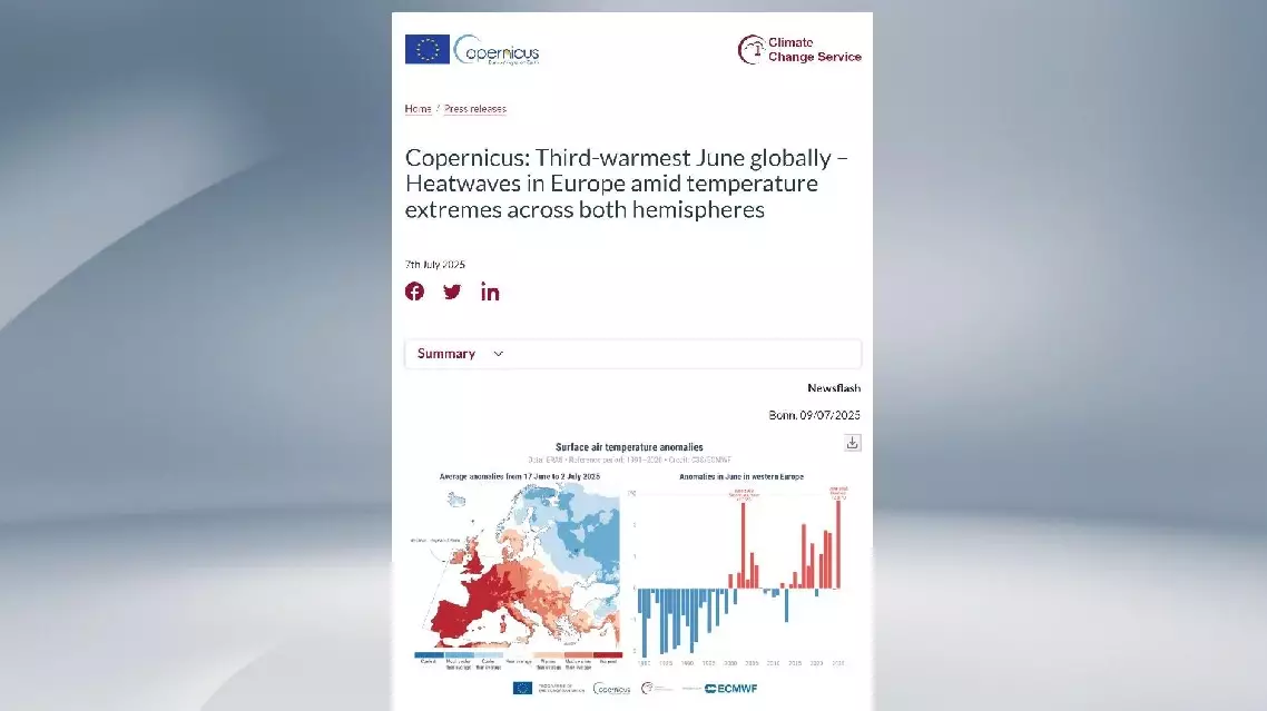 World records third-warmest June, says EU climate service