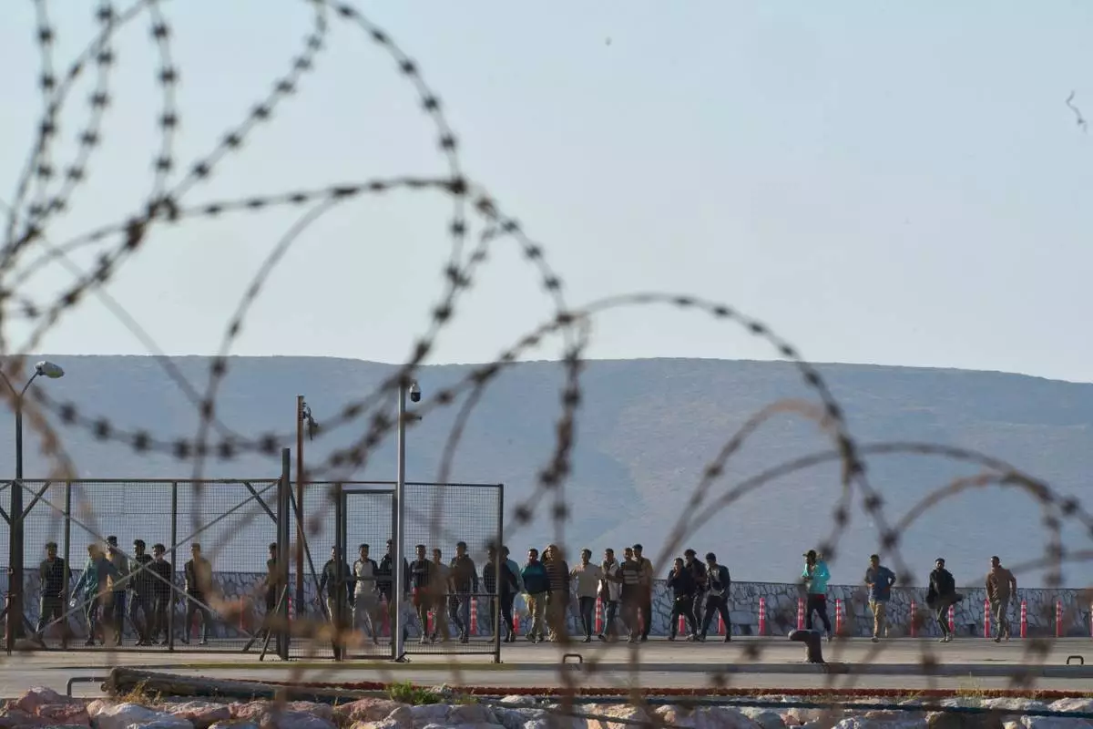Migrants rescued south of Crete walk after their arrival at the the port of Lavrio, Greece, on Thursday, July 10, 2025. (AP Photo/Petros Giannakouris)