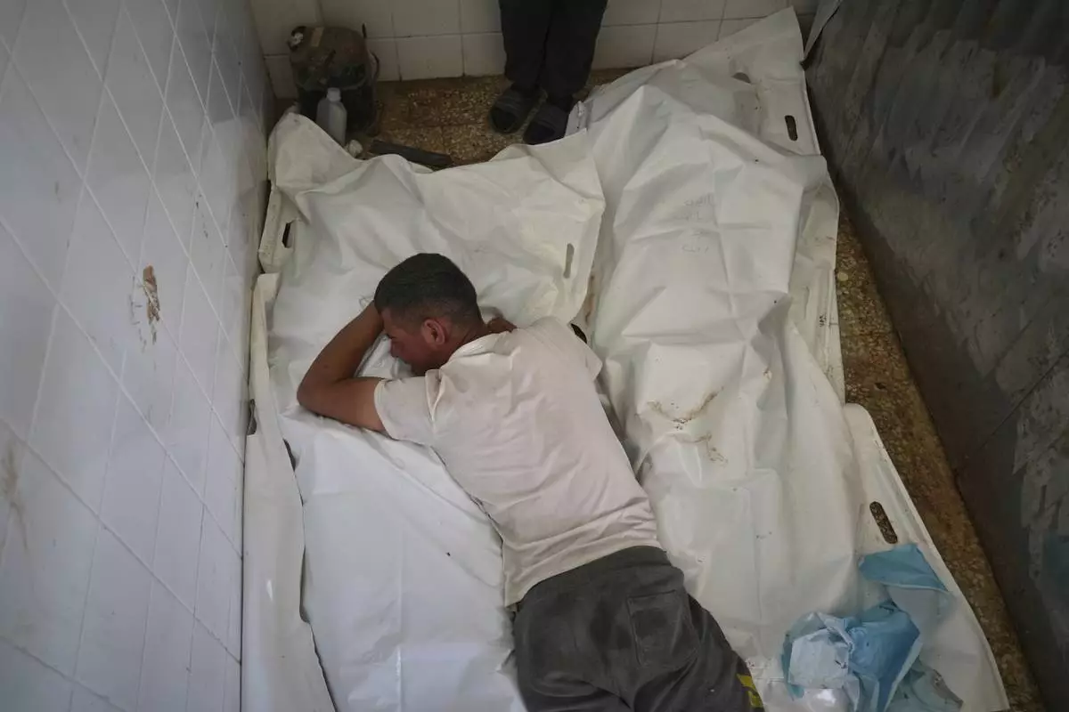 At the morgue of Al-Aqsa Hospital, families prayed over the bodies of their loved ones, laid across the floor.