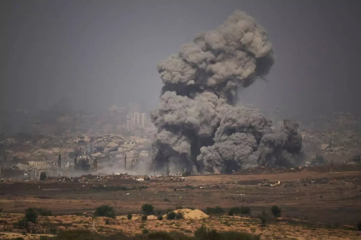 Smoke rises to the sky following an Israeli army bombardment in the northern Gaza Strip, as seen from southern Israel, Thursday, July 10, 2025. (AP Photo/Leo Correa)