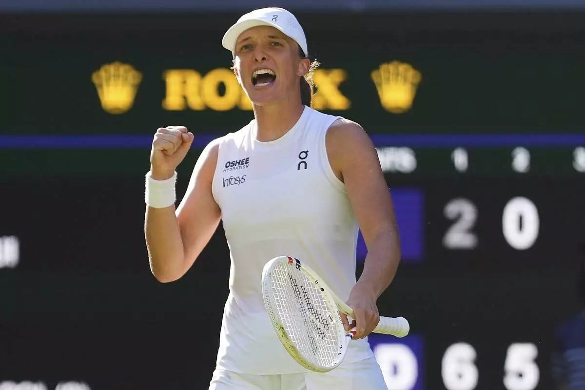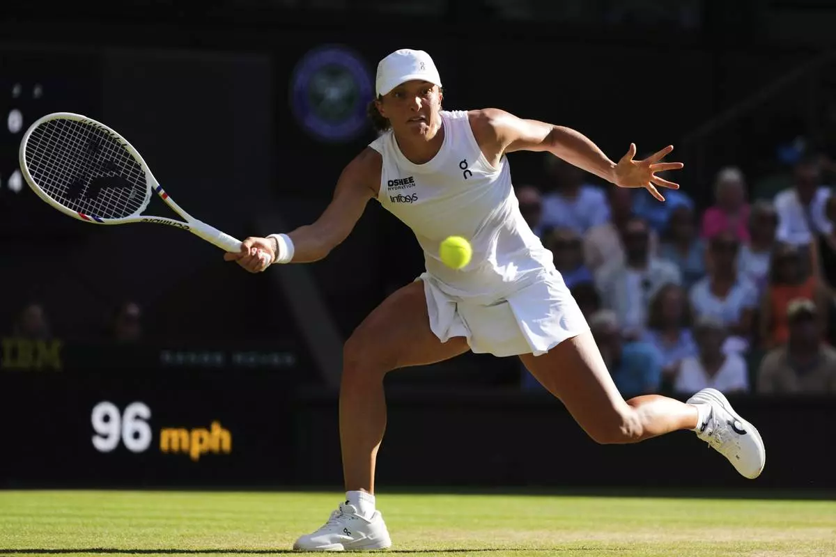 LONDON (AP) — More comfortable on grass courts than ever, Iga Swiatek played as well as she ever has on the slick surface — well, better than ever, actually — to reach her first Wimbledon final by defeating Belinda Bencic 6-2, 6-0 at Centre Court on Thursday.