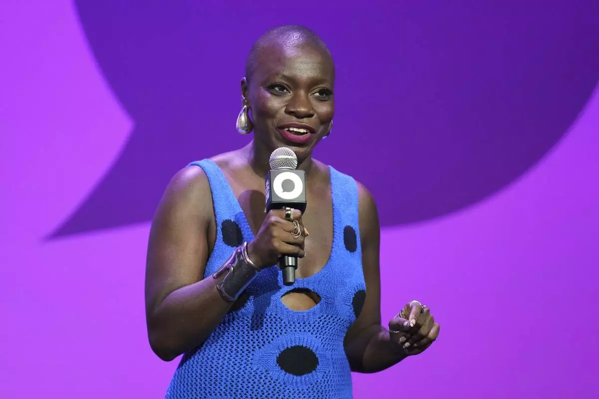 Jessica Nabongo speaks at a Global Citizen NOW event in Detroit, Thursday, July 10, 2025. (AP Photo/Paul Sancya)