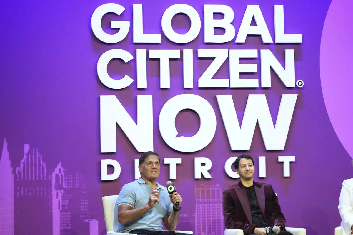 Mark Cuban speaks at a Global Citizen NOW event in Detroit, Thursday, July 10, 2025. (AP Photo/Paul Sancya)