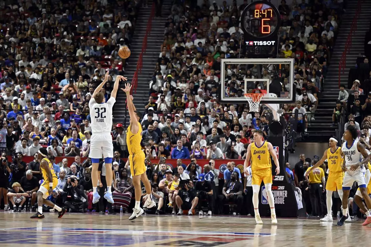 James buried his first attempt over Flagg, and then hit a 3-pointer after the 6-foot-8 Duke product missed his second attempt to give the Lakers a 5-0 lead.