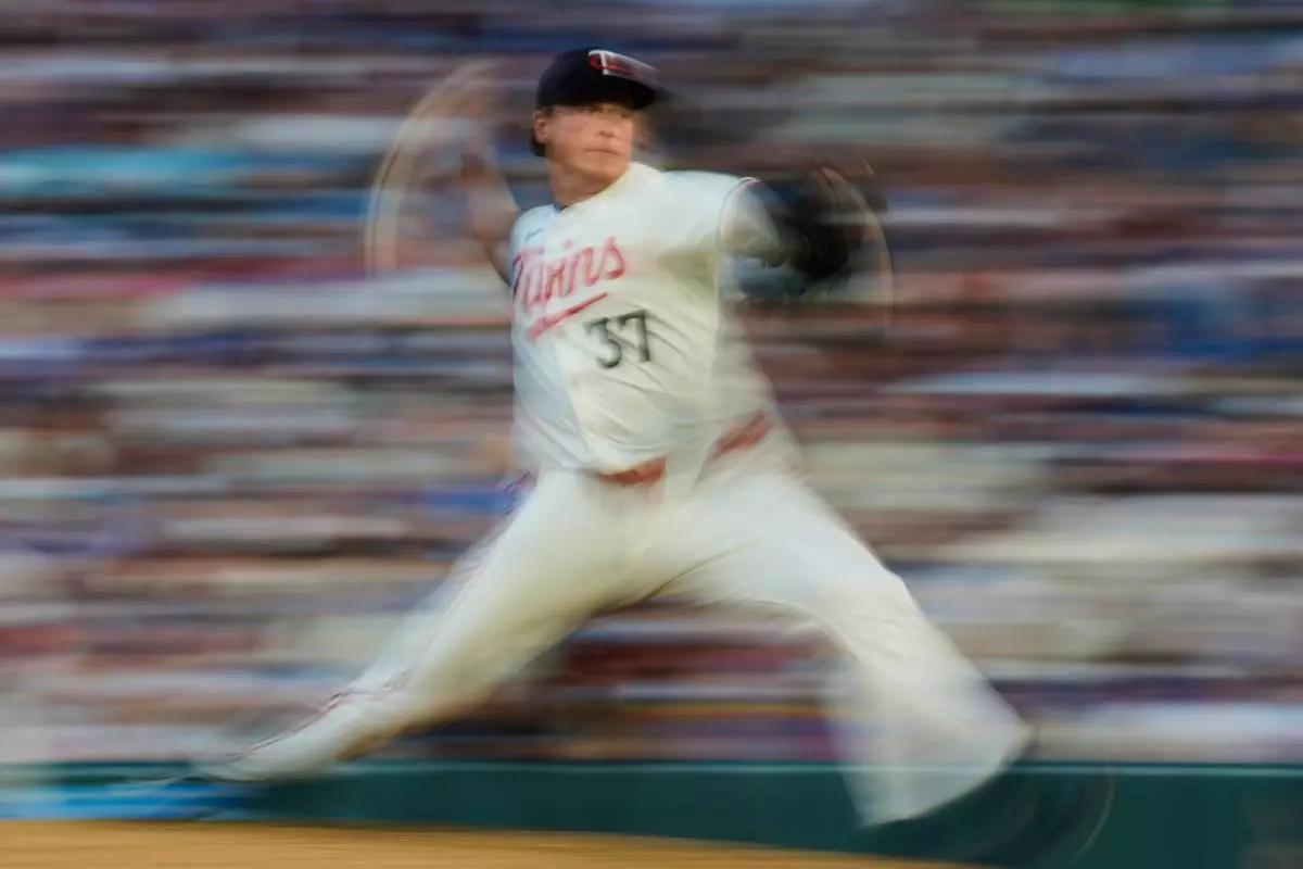 Minnesota Twins relief pitcher Louis Varland (37) delivers during the eighth inning of a baseball game against the Chicago Cubs, Wednesday, July 9, 2025, in Minneapolis. (AP Photo/Abbie Parr)