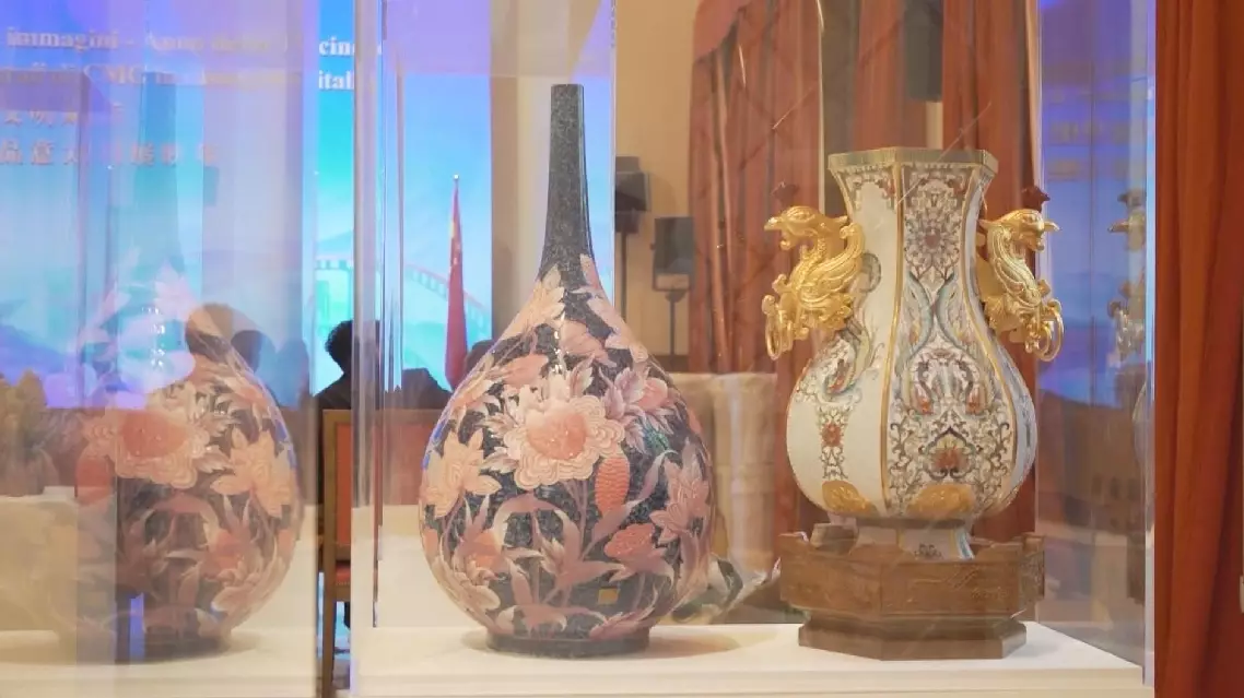 The exhibits highlighted both the uniqueness and shared elements of the two cultures, showcasing Chinese traditional crafts such as painting and calligraphy, cloisonne enameling, bamboo carving, embroidery, and Yunjin, a traditional style of Chinese silk brocade. Jade carving and paper-cuttings were seen alongside traditional Italian costumes, ceramics, bronzeware and other cultural relics.