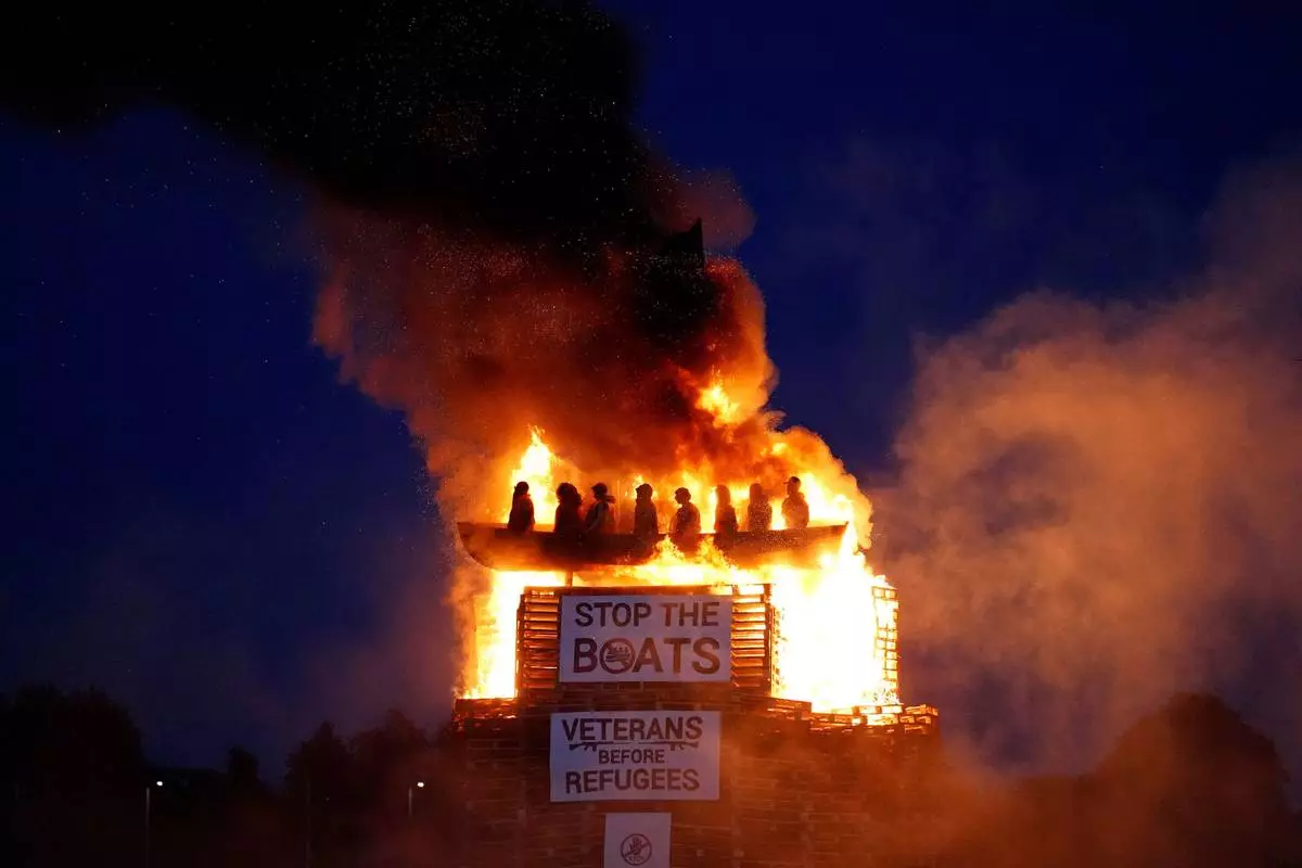 LONDON (AP) — Authorities in Northern Ireland are investigating a bonfire that featured effigies of migrants in a boat and a banner reading “stop the boats’’ to determine whether it was a hate incident.
