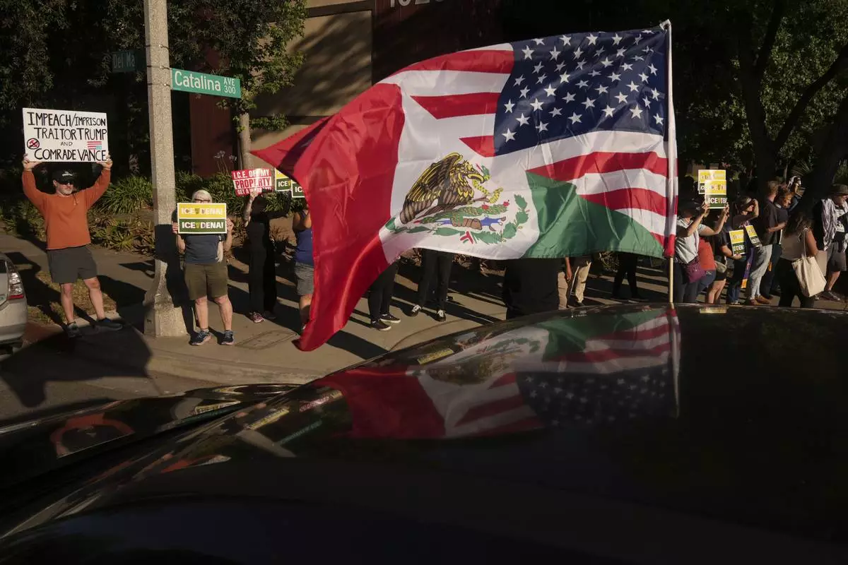 Residents gather during a community vigil on Monday, June 30, 2025, to stand in solidarity with an immigrant family after ICE agents detained Rosalina Luna Vargas on Saturday, June 28, in front of her children, in Pasadena, Calif. (AP Photo/Damian Dovarganes)