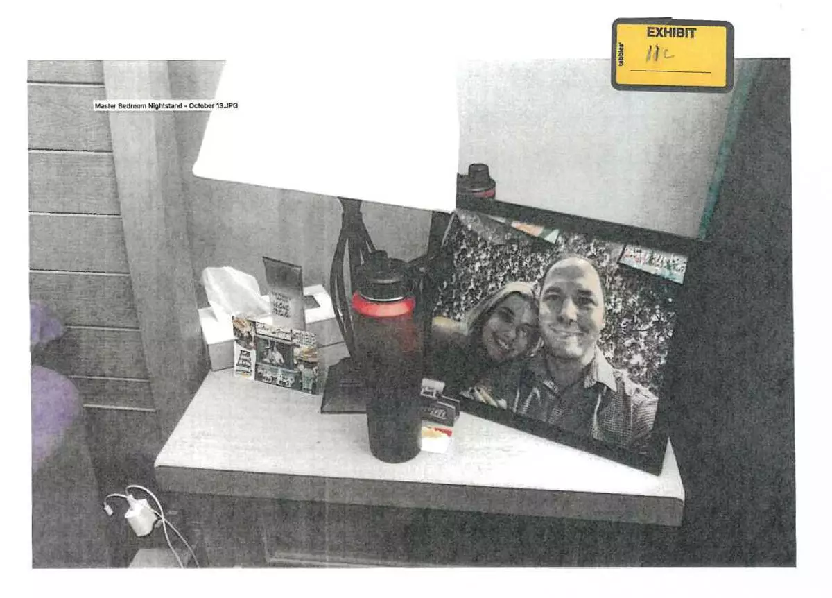 FILE - This image provided by the Fairfax County Police Department and taken on Oct. 13, 2023, was submitted as evidence in the murder case against Brendan Banfield shows a framed photo of Banfield and Juliana Peres Magalhães on his bedside table in Herndon, Va. (Fairfax County Police Department via AP, FILE)