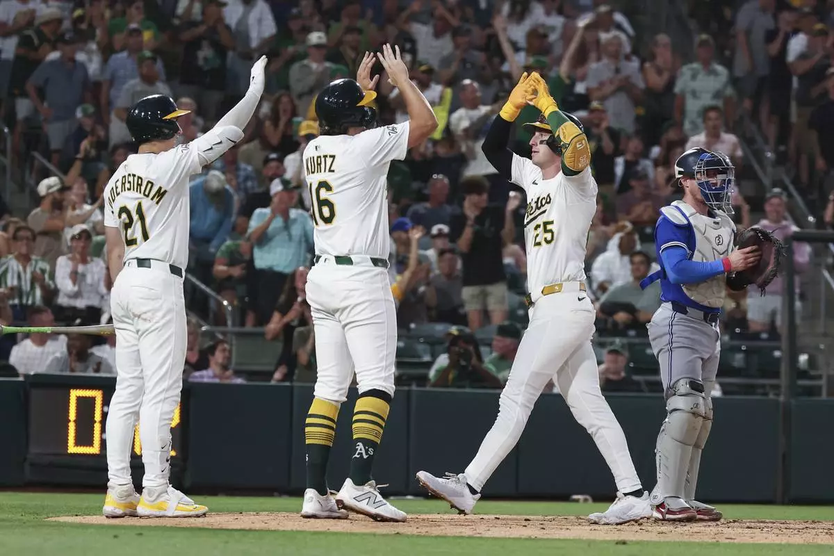 Rooker had an RBI double off Kevin Gausman (6-7) in the third inning to tie it 2-all after Lawrence Butler's single drove in the first run. Rooker hit his 20th home run two innings later after Nick Kurtz's two-out single for a 4-2 lead.