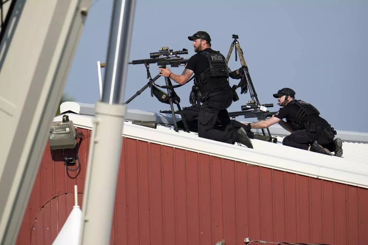 FILE - Police snipers return fire after shots were fired while Republican presidential candidate former President Donald Trump was speaking at a campaign event in Butler, Pa., July 13, 2024. (AP Photo/Gene J. Puskar, File)