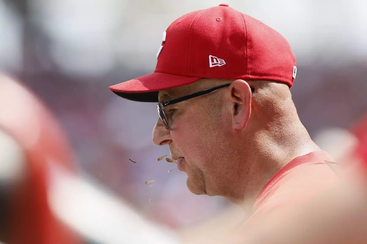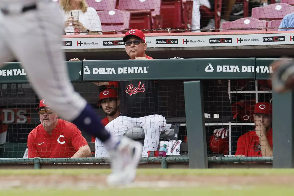 Cincinnati Reds manager Terry Francona watches a fly ball against the Colorado Rockies during the third inning of a baseball game, Sunday, July 13, 2025, in Cincinnati. (AP Photo/Jay LaPrete)