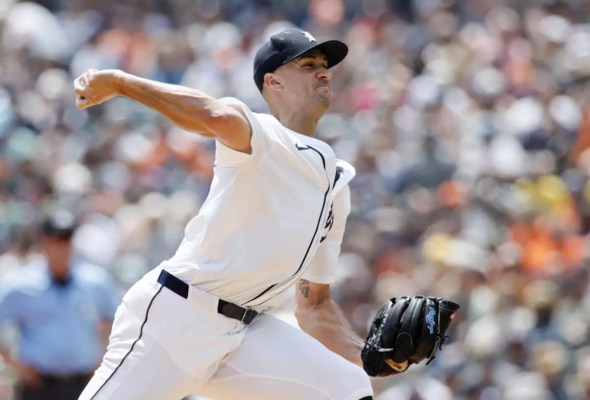 Detroit Tigers' Jack Flaherty pitches against the Seattle Mariners during the second inning of a baseball game Sunday, July 13, 2025, in Detroit. (AP Photo/Duane Burleson)