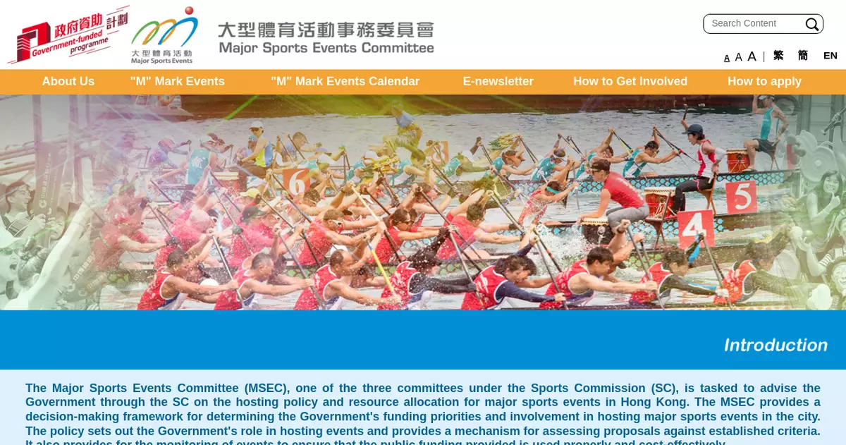 The "M" Mark System aims to encourage and help local National Sports Associations and private or non-government organisations to organise more major international sports events and nurture them into sustainable undertakings. Sports events meeting the assessment criteria will be considered for "M" Mark status by the MSEC. Funding support will also be provided to some events.