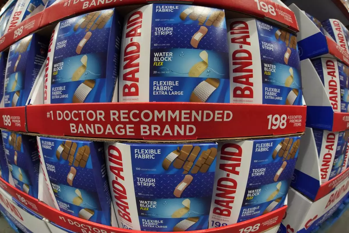 FILE - This is a display of Johnson and Johnson's Band-Aids in a Costco Warehouse in Pittsburgh, Jan. 26, 2023. (AP Photo/Gene J. Puskar, file)