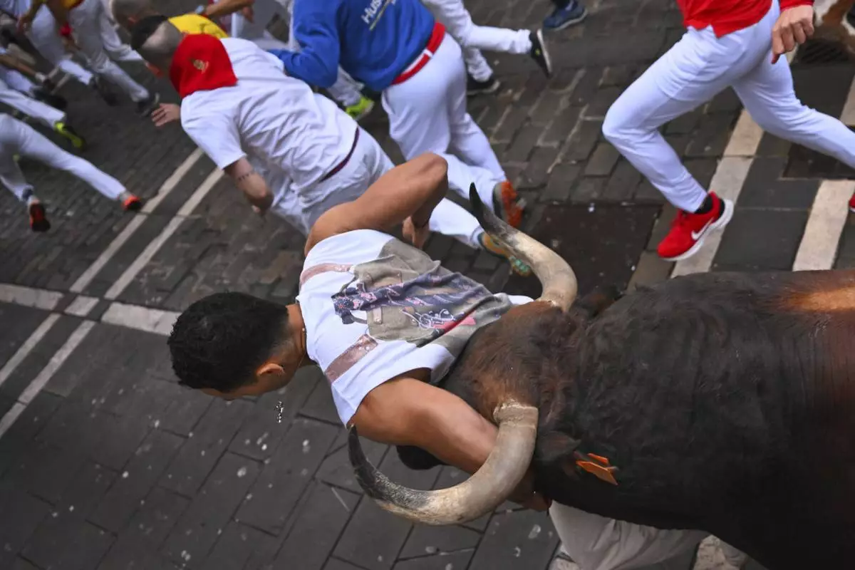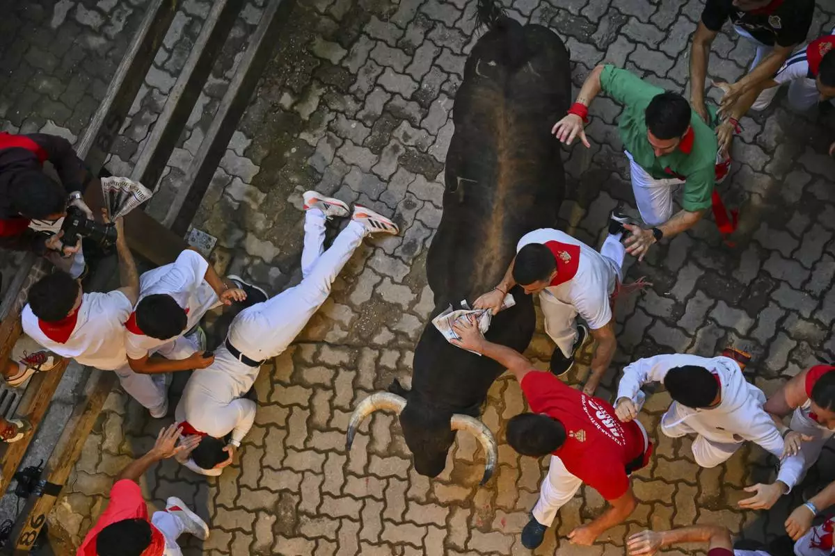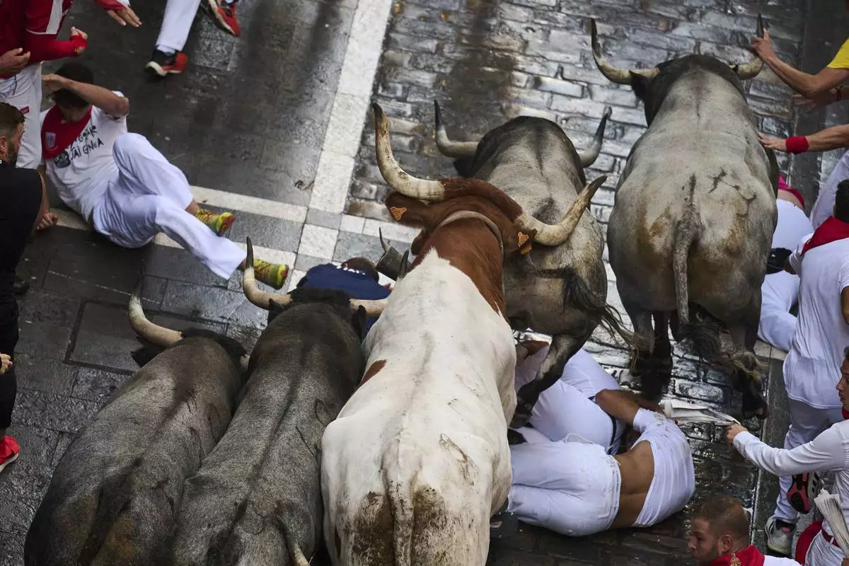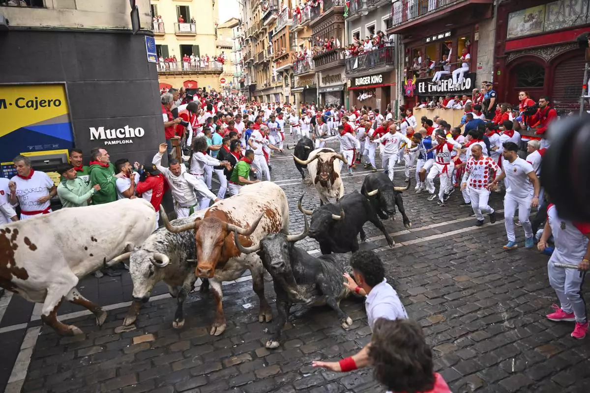 PAMPLONA, Spain (AP) — Tens of thousands of revelers celebrated Pamplona's annual San Fermín bull-running festival in northern Spain. The highlight of the nine-day festival is the early morning bull runs, when thousands of runners sprint to avoid six bulls charging along a winding cobblestoned route to the city’s bullring.
