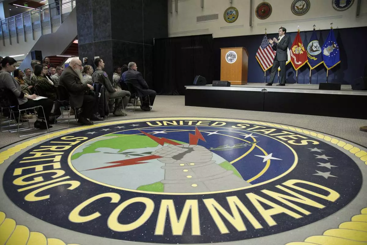 FILE - U.S. Secretary of Defense Mark Esper holds a Q&A session during a visit to the U.S. Strategic Command at Offutt AFB, Neb., Feb. 20, 2020. (AP Photo/Nati Harnik, file)