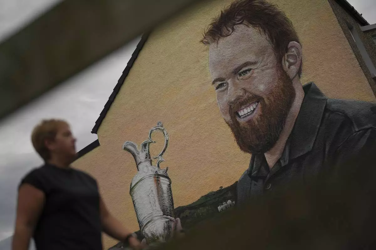 PORTRUSH, Northern Ireland (AP) — A mural of Shane Lowry holding aloft the claret jug adorns the side wall of a house just across the road from Royal Portrush.