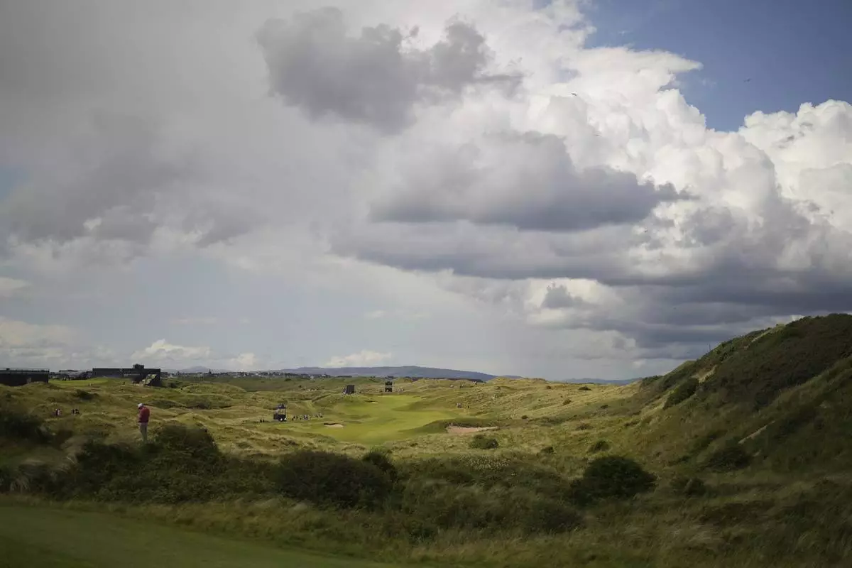 A general view of the Royal Portrush golf course during a practice round for the 2025 British Open golf championship at the Royal Portrush Golf Club, Northern Ireland, Monday, July 14, 2025. (AP Photo/Francisco Seco)