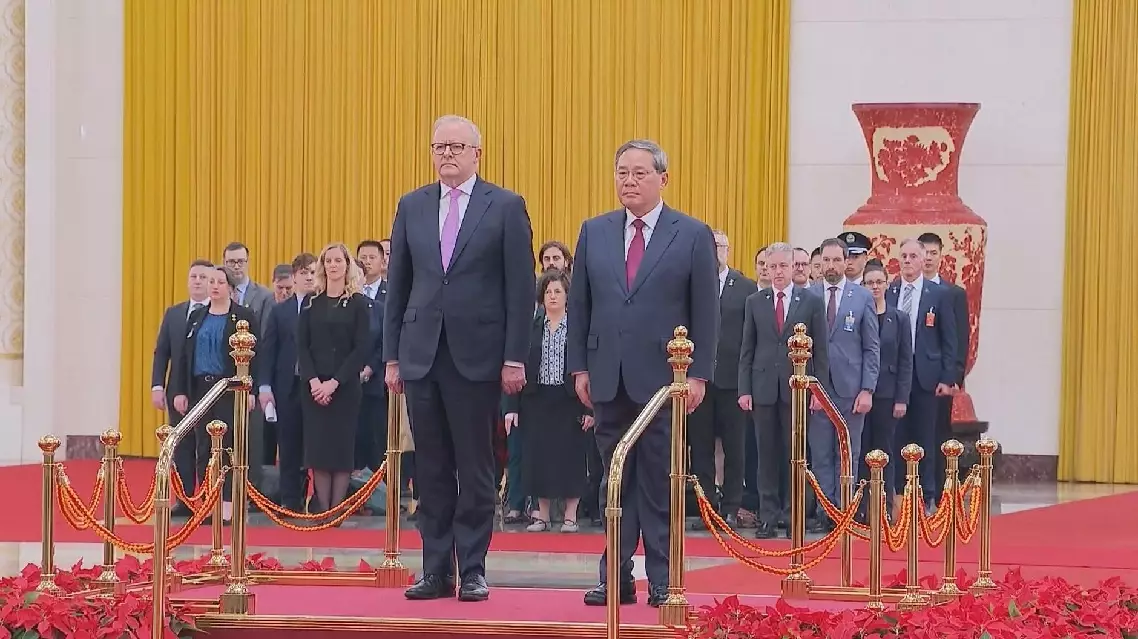 Chinese Premier Li Qiang held a welcome ceremony for visiting Australian Prime Minister Anthony Albanese in the Great Hall of the People in Beijing on Tuesday afternoon.