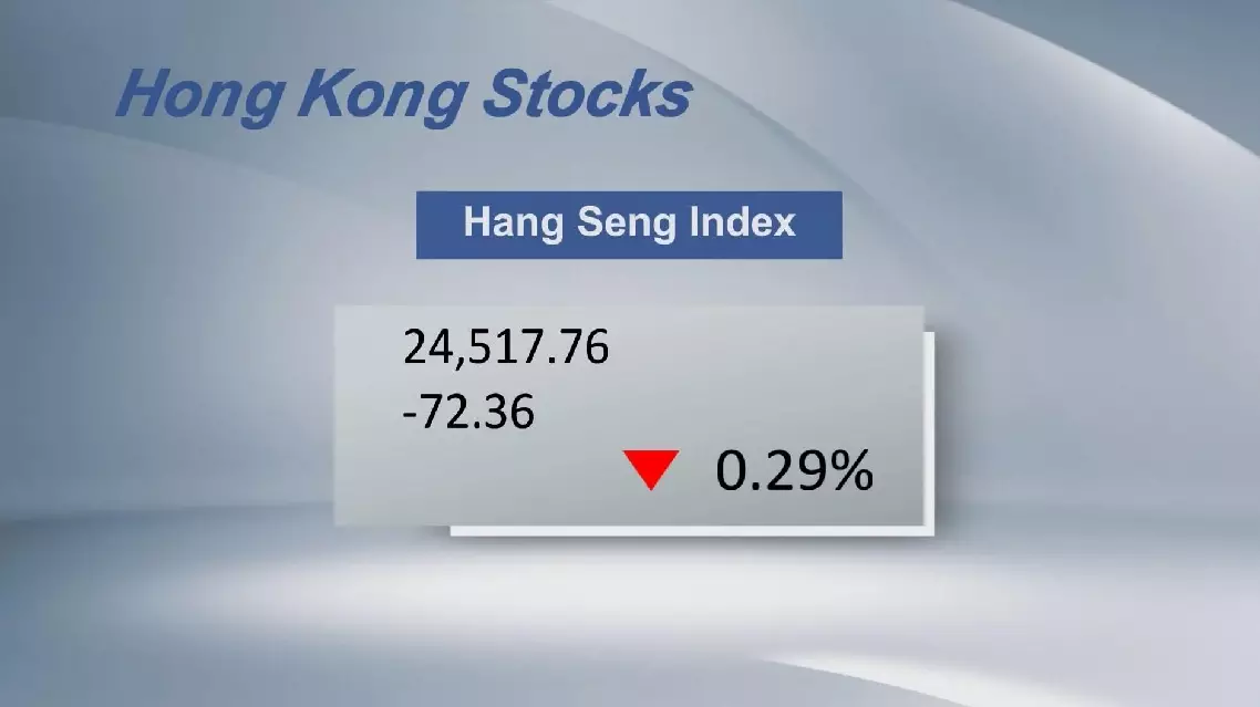 Hong Kong's stock market ended lower on Wednesday with the benchmark Hang Seng Index down 0.29 percent to close at 24,517.76 points.