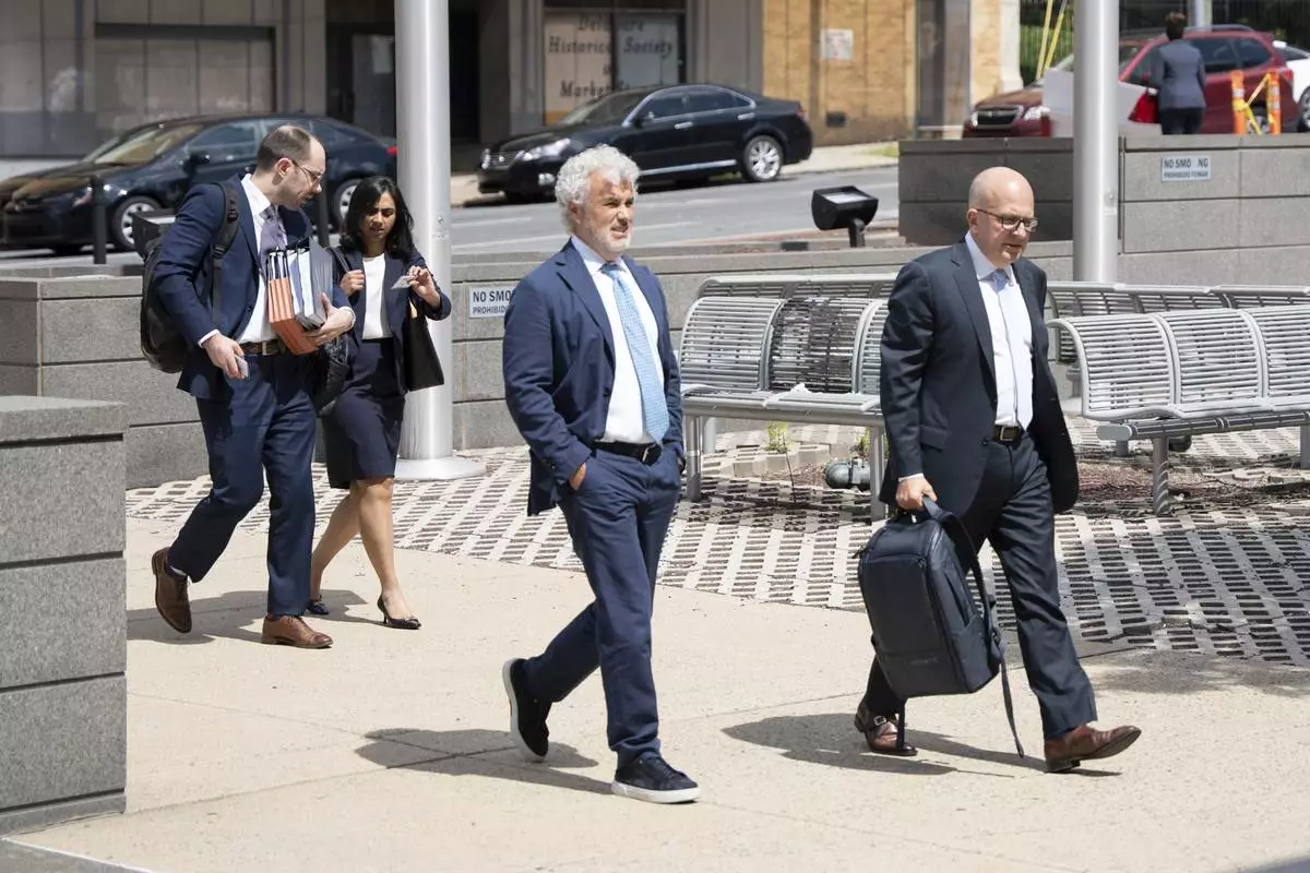 Former White House Chief of Staff Jeffrey Zients, center, arrives at the Court of Chancery on Wednesday, July 16, 2025, in Wilmington, Del. (AP Photo/Mingson Lau)
