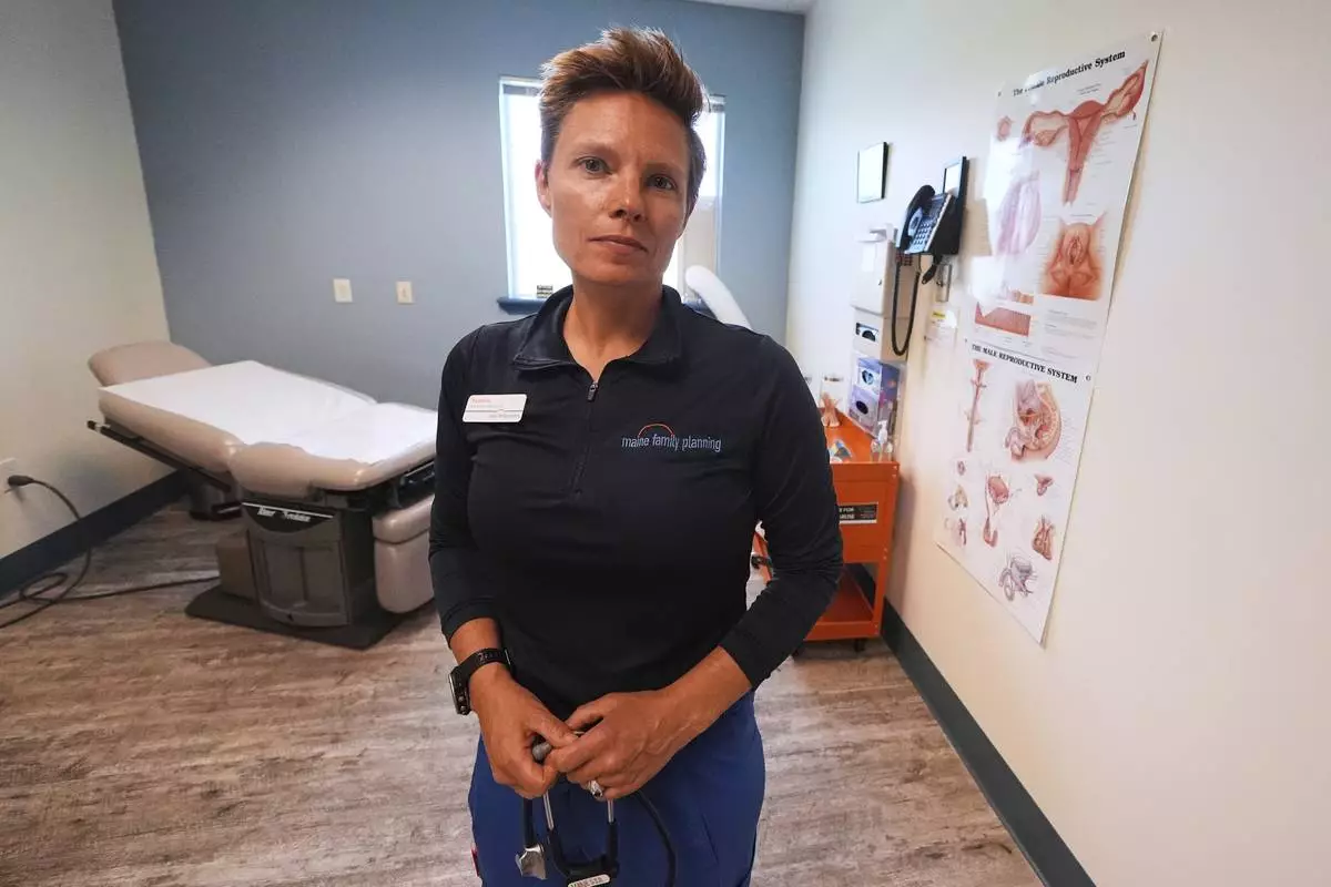 Vanessa Shields-Haas, a nurse practitioner, poses at the Maine Family Planning healthcare facility, July 15, 2025, in Thomaston, Maine. (AP Photo/Charles Krupa)