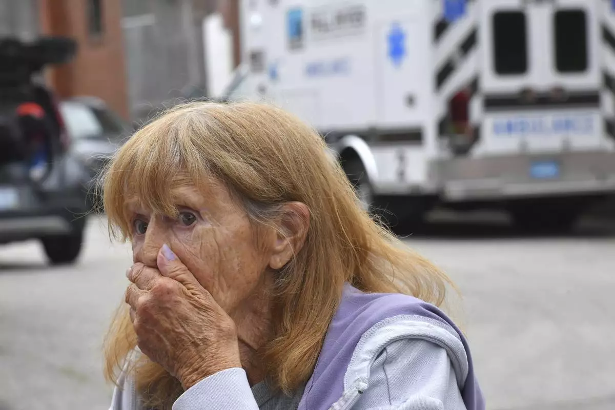 Donna Murphy, a resident at the Gabriel House assisted living facility, in Fall River, Mass., speaks with members of the media outside a temporary shelter, Monday, July 14, 2025, in Fall River, Mass., following a fire at the Gabriel House that started late Sunday and resulted in multiple fatalities. (AP Photo/Steven Senne)