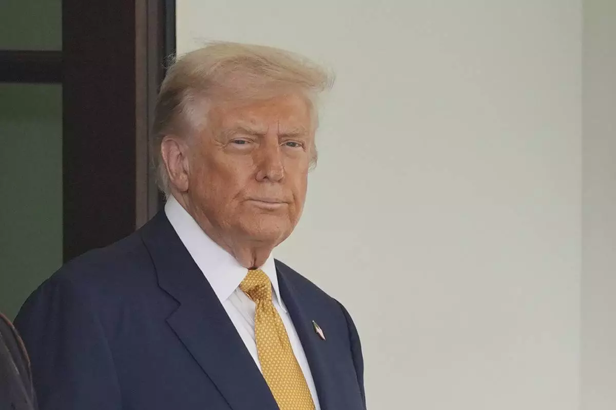 President Donald Trump waits to greet Bahrain's Crown Prince Salman bin Hamad Al Khalifa at the White House, Wednesday, July 16, 2025, in Washington. (AP Photo/Evan Vucci)
