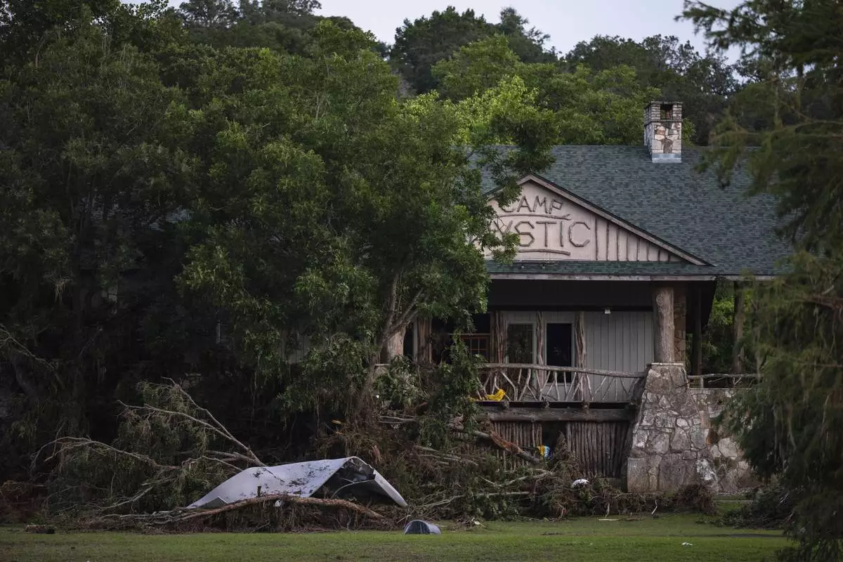 FILE - Debris covers the area of Camp Mystic in Hunt, Texas, Monday, July 7, 2025, after a flash flood swept through the area. (AP Photo/Eli Hartman, File)