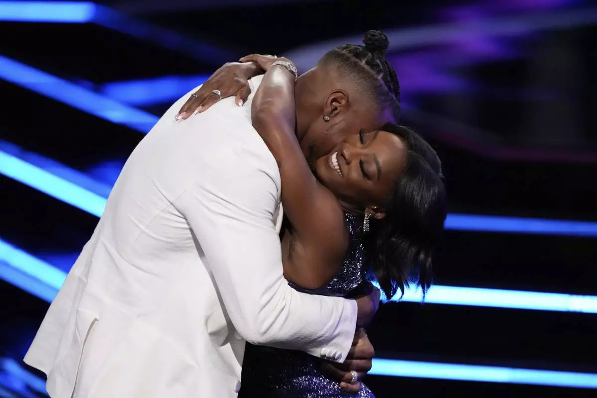 “That was very unexpected, especially in a category of all men,” Biles said after kissing her husband, Chicago Bears safety Jonathan Owens.