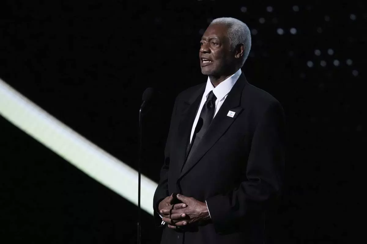 Oscar Robertson speaks while being honored with the Arthur Ashe Award for Courage at the ESPY Awards at the Dolby Theatre in Los Angeles, Wednesday, July 16, 2025. (AP Photo/Mark J. Terrill)